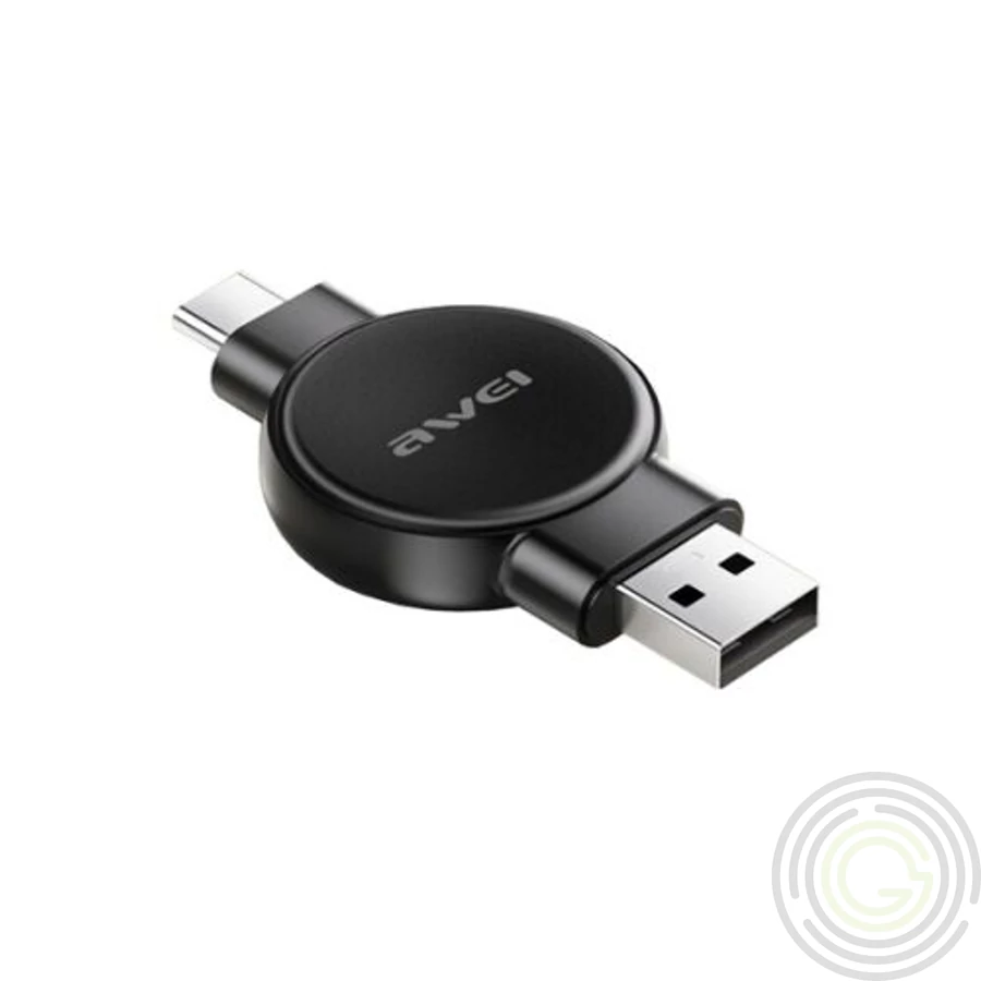 AWEI asztali töltő USB+Type-C (2.5W, w ireless, mágneses, Samsung Watch töltő/Apple Watch töltő)