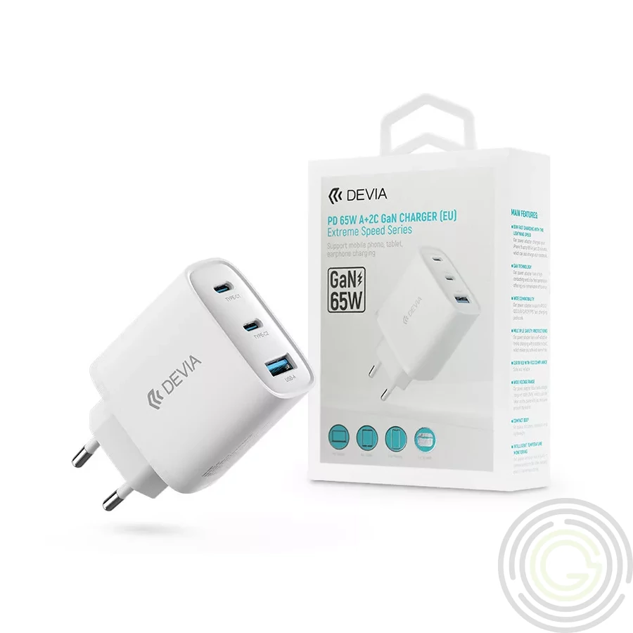 Devia Extreme Speed Series 65W GaN PD hálózati gyorstöltő adapter USB+2xType-C - fehér