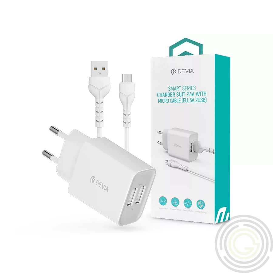 Devia Smart Series 12W 2xUSB hálózati töltő adapter + USB/microUSB kábel 1m