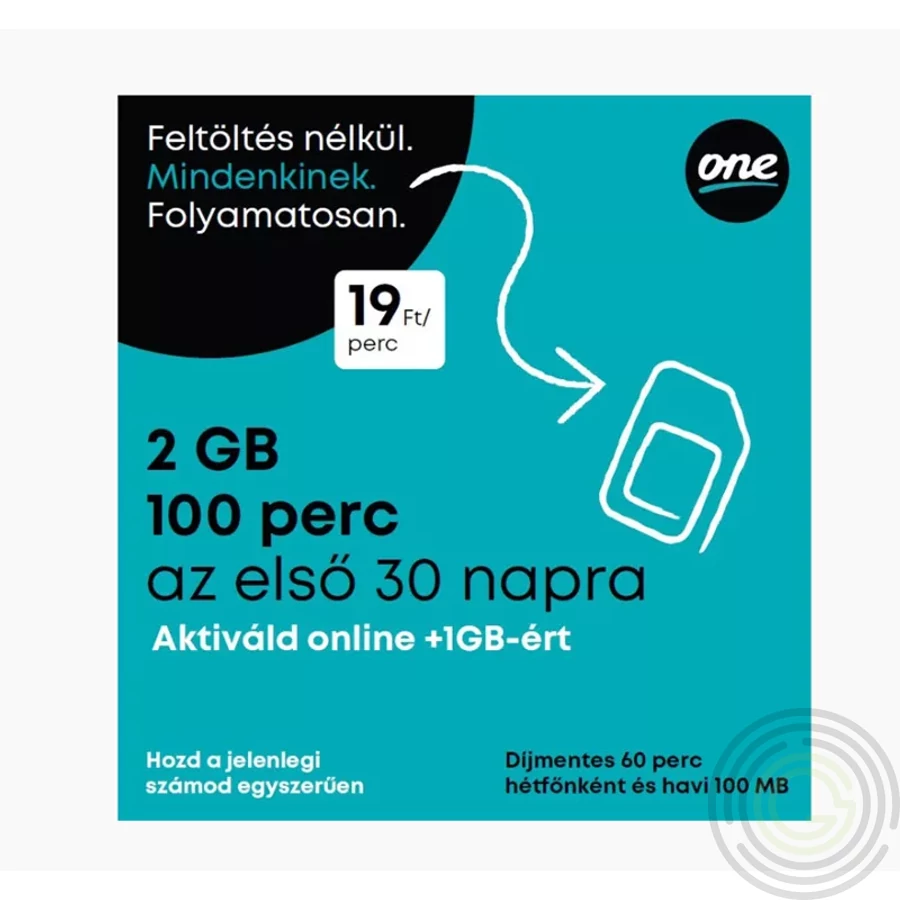 SIM One aktiválatlan sim kártya 2GB(+1GB) adat és 100 perc kiinduló kerettel
