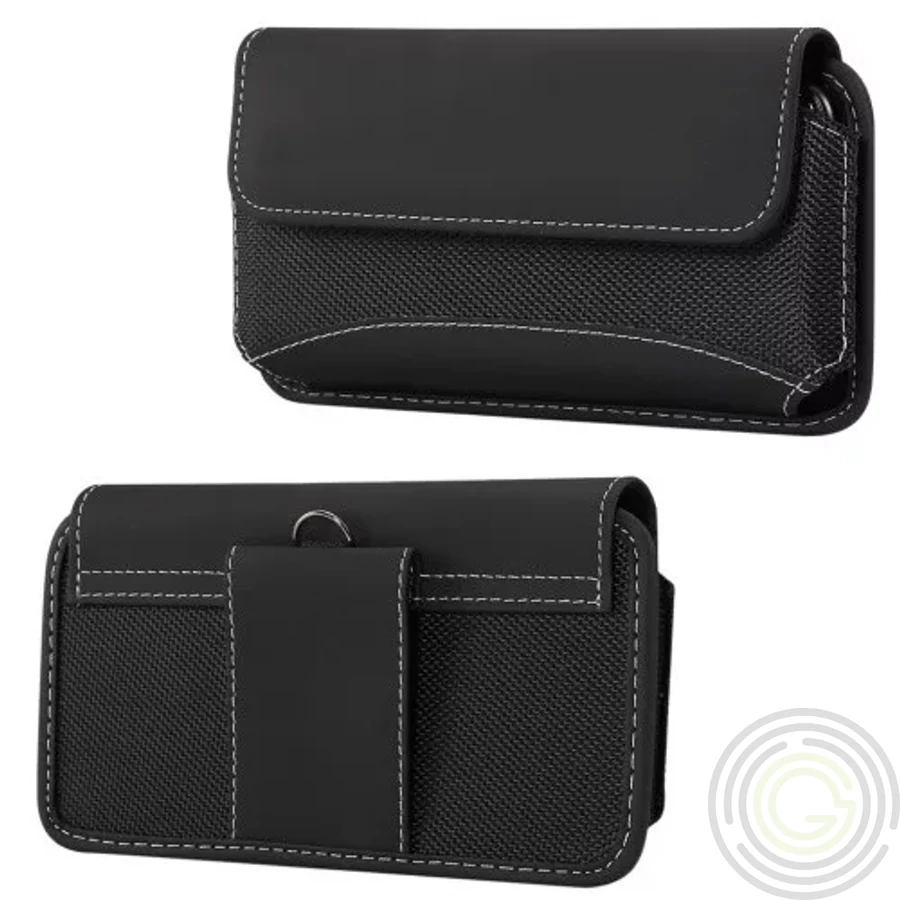 Tok fekvő, bőr hatású (univerzális, övre fűzhető, tépőzáras, textil, 6.4 - 6.9" Fekete